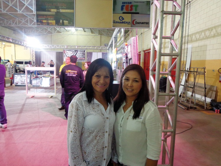 - Lilian Sayuri e Mara Moura da Decor Fest no estande da Inova Comunicação Visual
