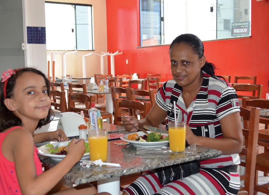 - A pequena Lauany e sua mãe Lucelia almoçam no Restaurante Mão na Massa