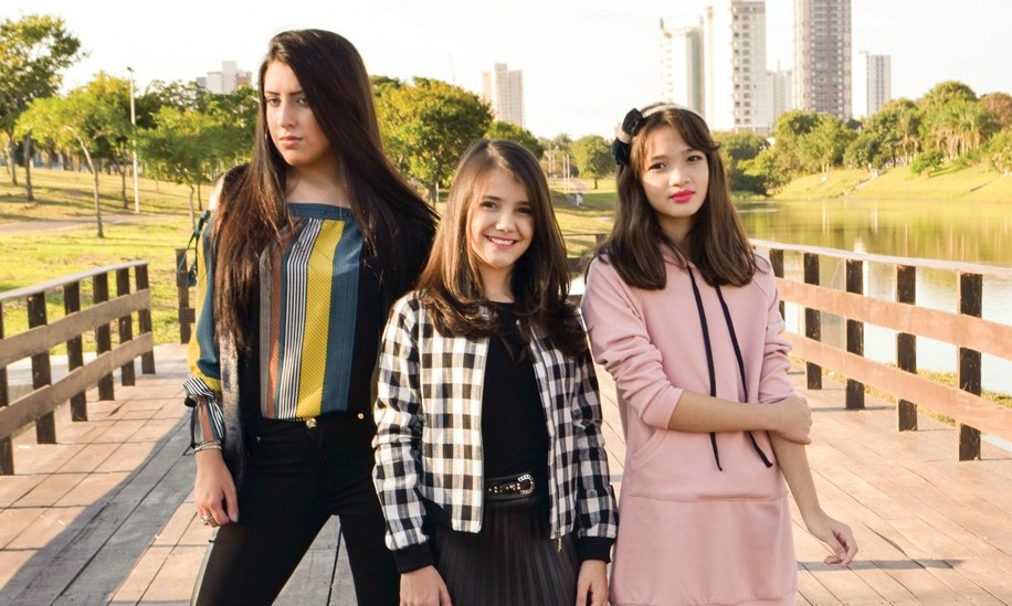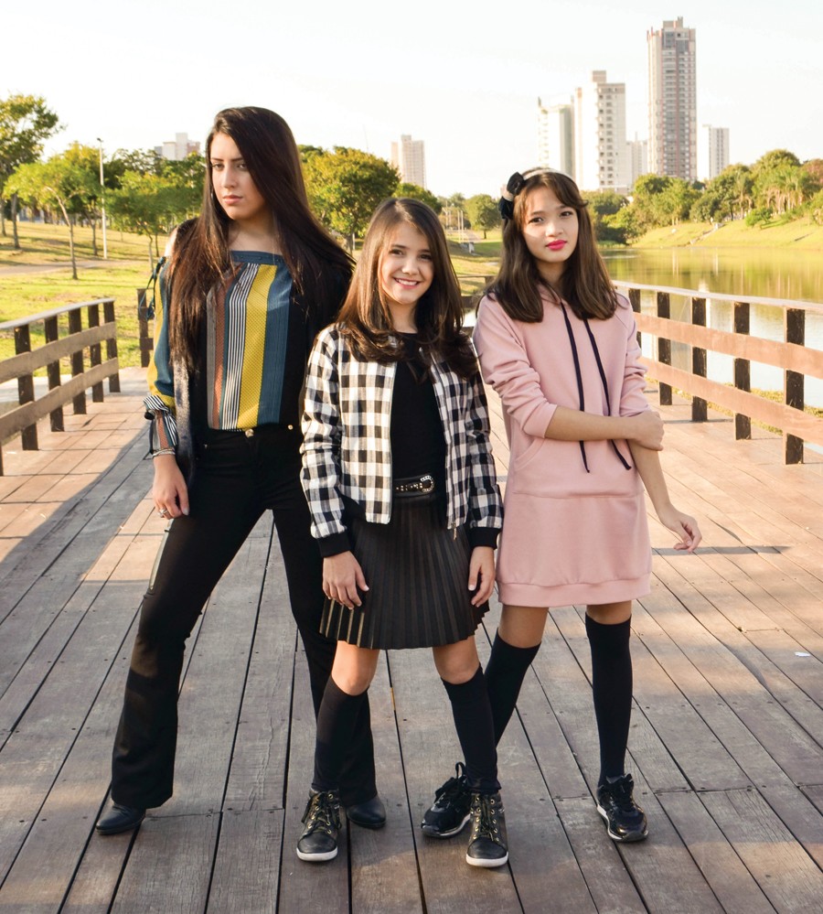 Bianca, Brenda e Larissa vestem looks da Camaleão Kids.