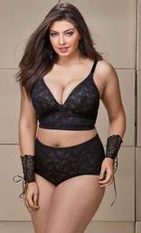 Pura sensualidade é o que sugere o conjunto Angelet Plus, confeccionado em renda com detalhe em tule transparente. O sutiã tem taças sem espuma com sustentação e tule no decote e veste até o tamanho 54. A calça clássica é confeccionada em microfibra elástica e renda com leve compressão na cintura e veste até o XG.