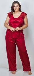 Também sensuais são o sutiã plus e a calça clássica Merlot, confeccionados em renda elástica. Body Amarração Plus: lindo e sensual, além de muito prático, o Body Amarração Plus é confeccionado em renda elástica com moderada compressão que modela a silhueta. Não tem aro nem espuma. A frente é forrada para permitir o uso sem sutiã. Tem fecho entre as pernas. O conjunto Carícia, confeccionado em microfibra soft é romântico e delicado. O sutiã tem suporte (aro) e taças sem espuma. Vem acompanhado de uma presilha que permite unir as alças nas costas para maior sustentação e veste até o 52. Para completar, o Pijama Arpa Plus, confeccionado em jersey microfibra macio e confortável com detalhes em renda elástica, disponível nas cores carmim, marinho e verde-esmeralda, e veste até o tamanho 50.