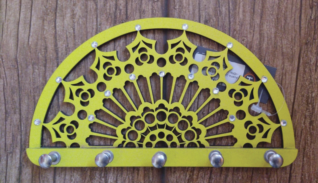 A artesã Vera Cassador, de Pedreira, criou mandalas utilizando como material a madeira de reflorestamento. Suas peças podem ser penduradas na parede ou dispostas sobre um móvel. Com a metade de uma mandala ela criou um porta-chaves e por cores vivas, como o amarelo e o azul celeste.