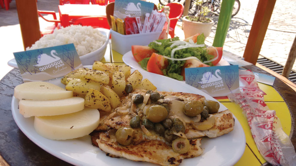 O Quiosque Park Carlinhos, além de seu belo espaço com vista de um dos pontos mais agradáveis de Indaiatuba, oferece deliciosas opções de pratos variados em seu cardápio. O cardápio conta com porções de peixes, caldos, lanches, pratos executivos e muito mais. Para ressaltar, a pedida da vez é provar do apetitoso Filé de Tilápia Grelhada, que é servido em um recheado prato com alcaparras, champignons e batatas dorê. Para conhecer essas e outras delícias do Quiosque Park Carlinhos basta ir até a Avenida Engenheiro Fábio Roberto Barnabé, 4.015 (Parque Temático), das 9h às 23h. O telefone é (19) 3392-6288.