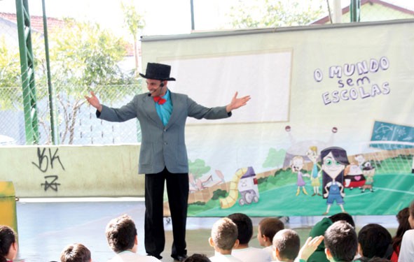 Como seria o mundo sem escolas? O projeto ‘O Mundo sem Escolas’ trata desta questão com o público infantil de modo leve, lúdico e divertido, misturando fantasia com fatos do cotidiano. No dia 31 de agosto, aconteceu uma apresentação especial em Indaiatuba, para crianças da Casa da Fraternidade, instituição sem fins lucrativos com foco na área social, que atende em média 60 crianças e jovens da cidade.