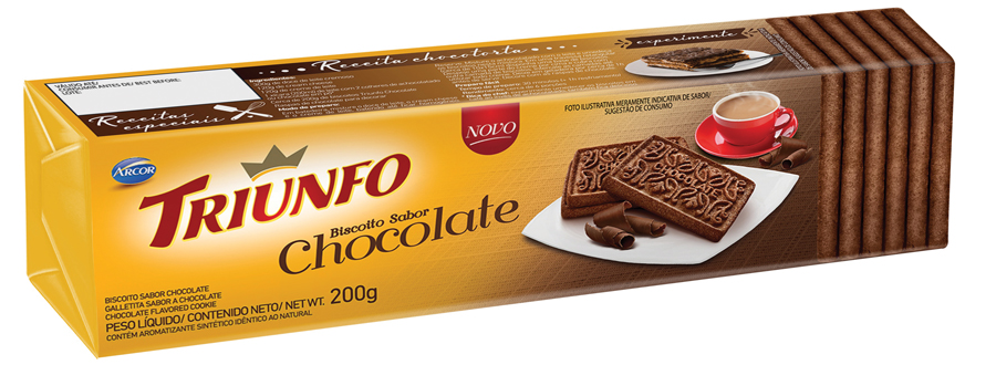 Por aqui, a receita leva Triunfo Chocolate, versão brasileira das Chocolinas, biscoito consagrado da fabricante comercializado no país vizinho. Triunfo Chocolate, que é lançamento no Brasil, traz as instruções do preparo da sobremesa impressas na lateral da embalagem.