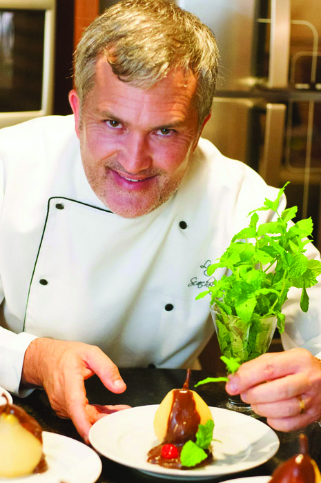 Peras ao Vinho Branco com cobertura de Ganache de Chocolate