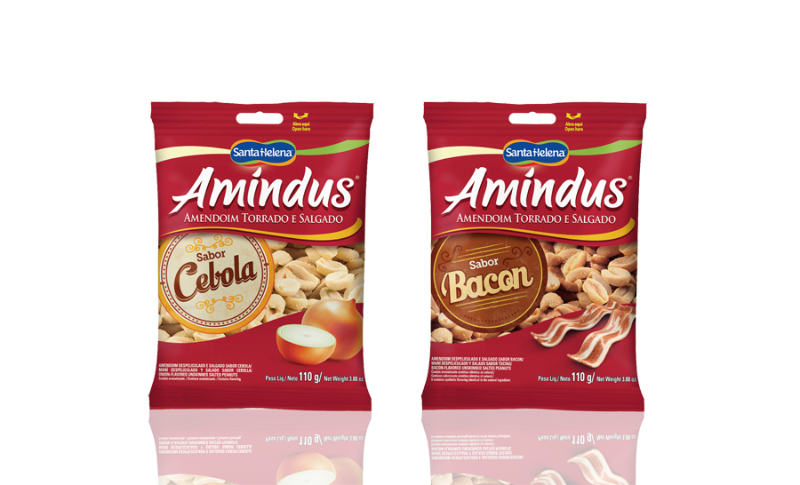 A família Amindus cresceu e agora conta com dois novos sabores – Bacon e Cebola – que chegaram aos pontos de venda de todo o Brasil para impulsionar a mais tradicional marca de amendoim torrado e sem pele da Santa Helena.