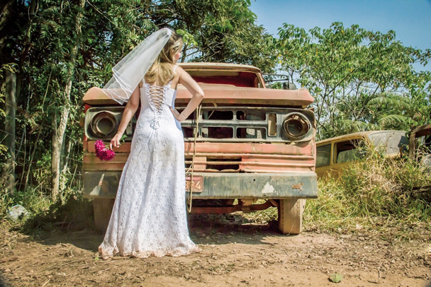 O que vocês acham da ideia de destruir ou sujar o seu vestido de noiva? Acha que isso não existe? Negativo, essa é uma tendência que só tem crescido no Brasil. O ‘Trash the Dress’ é um tipo de ensaio fotográfico de casamento em que não existe o mínimo de preocupação com o vestido. A noiva pode entrar na água, deitar no chão, rolar na areia, enfim, ficar bem à vontade para a sessão de fotos. “Desde o início da minha carreira buscava apresentar algo inusitado. Após algumas pesquisas na internet, conheci o ‘Trash the Dress’ que significa ‘Jogar o Vestido no Lixo’. Aqui no Brasil, a proposta ainda é considerada radical e nova, mas está dando muito certo com os meus clientes”, conta a fotógrafa Bruna Cagnin, que explica que os ensaios podem ser realizados antes do casamento com um vestido alugado, escolhido pela futura noiva ou pode ser feito após o casamento, até mesmo com o vestido usado no grande dia, que normalmente é comprado pela noiva. “O ensaio exige muita disposição e sintonia entre todos os envolvidos. Por ter vários detalhes compondo a cena, como estilo, local, clima e adereços, quem escolhe fazer o ‘Trash the Dress’ precisa estar preparado para a grande maratona, que com certeza nos traz um resultado incrível e gratificante de toda essa combinação”.
